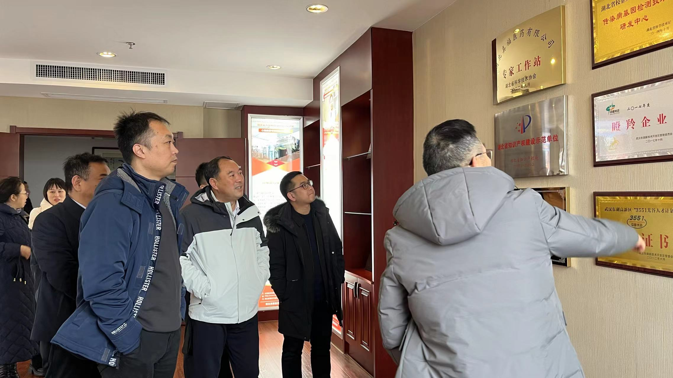 2024年2月21日,鄂州經(jīng)過一場春雨的洗禮后,煥發(fā)出盎然的生機。上午時分,真福醫(yī)藥迎來了一場重要的走訪調(diào)研活動。市政府黨組成員王升澤、市政府辦公室副主任劉暢、市市場監(jiān)管局局長鐘文、市公共檢驗檢測中心主任熊新良一行領(lǐng)導(dǎo),在葛店經(jīng)濟技術(shù)開發(fā)區(qū)黨工委副書記、管委會主任邱建明和經(jīng)開區(qū)經(jīng)濟發(fā)展局局長祝曉榮等區(qū)領(lǐng)導(dǎo)的陪同下親臨湖北真福醫(yī)藥有限公司進行實地考察與深度交流,以實際行動推進包保企業(yè)服務(wù)工作,為企業(yè)注入新的活力與發(fā)展動力。領(lǐng)導(dǎo)們實地走訪了公司的行政大樓以及生產(chǎn)車間后,在會議室展開會談。